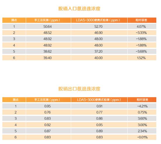 為驗證該產(chǎn)品對氨逃逸濃度測量的準確性,在某1000MW燃煤機組進(jìn)行了手工法測量與儀器測量的對比試驗。