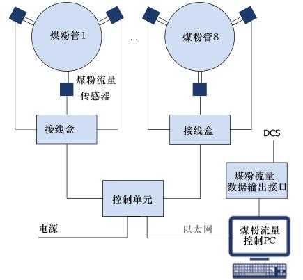 “煤粉流量測量系統”的接線(xiàn)盒位置靠近煤粉管上的流量傳感器。接線(xiàn)盒收集到煤粉管上流量傳感器的信號后傳給測量系統的控制單元。