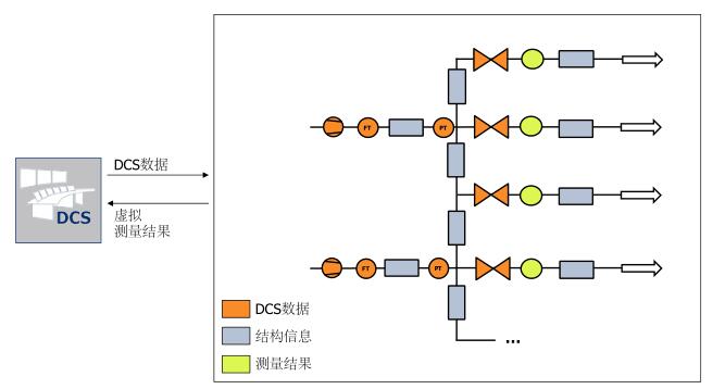 流體管網(wǎng)模型的構建是來(lái)源于根據工藝管道及儀表流程圖中的所有系統部件數據庫。采用電廠(chǎng)的歷史數據對模型進(jìn)行辨識和檢驗。接下來(lái),把虛擬傳感器集成到DCS的結構中,然后進(jìn)行系統調試并檢驗結果。